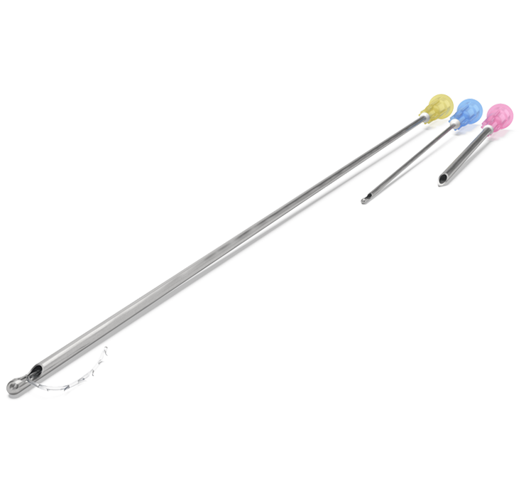 Fils bio-résorbables en caprolac / acide polylactique pré-installés dans les canules.